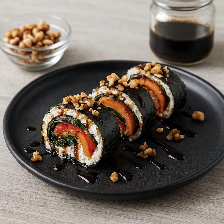 Suvyniokite nori lapą į ritinėlį (kaip suši), standžiai suspausdami.